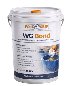 It can also be used as a plugging agent and as a solution to help reduce mud losses during drilling and tunnelling. In the WallGrip brief, WG Bond is also described as a specialty additive for stopping collapsing during drilling operations.